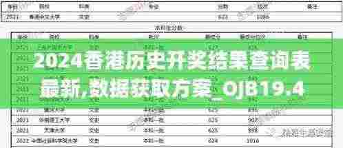 随着信息技术的迅速发展和数据智能化的不断推进,香港地区在历史数据的查询和整合上逐渐显现出新的需求。2024香港历史开奖结果查询表最新的相关数据,不仅能够帮助研究者和历史爱好者更好地理解香港的历史脉络,同时也为政策制定、学术研究等提供了可靠的依据。因此,本文将提出一套关于“2024香港历史开奖结果查询表最新,数据获取方案_OJB19.42”的解决方案,旨在提升数据的获取效率和实际应用价值。