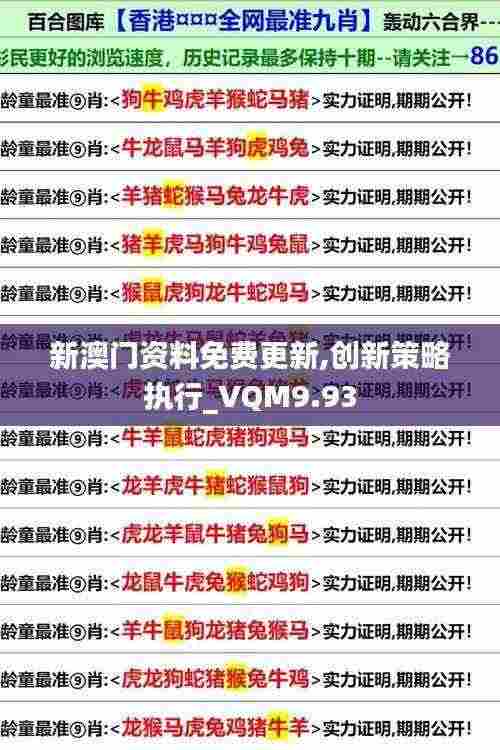 新澳门资料免费更新,创新策略执行_VQM9.93是推动澳门经济与社会发展的重要政策,旨在通过信息的整合与创新策略的实施,提高本地企业的竞争能力,促进经济的持续增长。政策的成功实施,需要社会各界的共同努力,也将为澳门创造更加美好的未来。